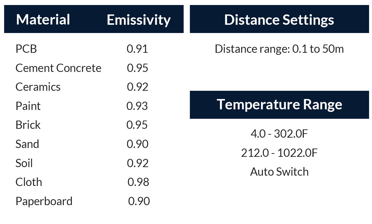 Tailor emissivity, distance, and measurement span to suit different targets, ensuring precise and reliable readings.